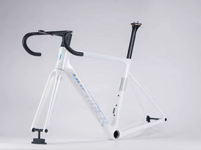 Geometría agresiva inspirada en cuadros aero de competición, optimizada para alta velocidad y eficiencia aerodinámica.