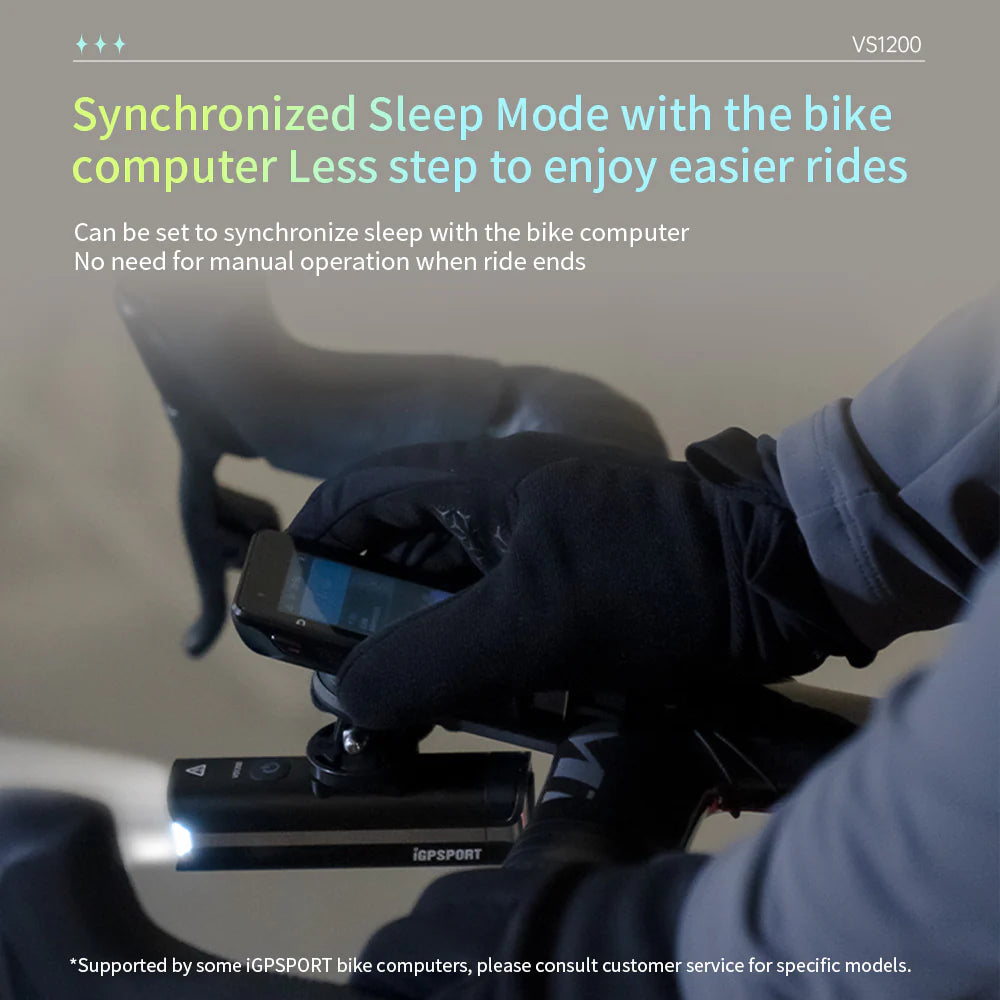 The iGPSPORT VS1200 is a front bicycle light designed to offer excellent visibility, long battery life, and comfort, whether for urban commutes, night rides, or long journeys. Its combination of power, long battery life, and automatic functions makes it ideal for demanding cyclists.