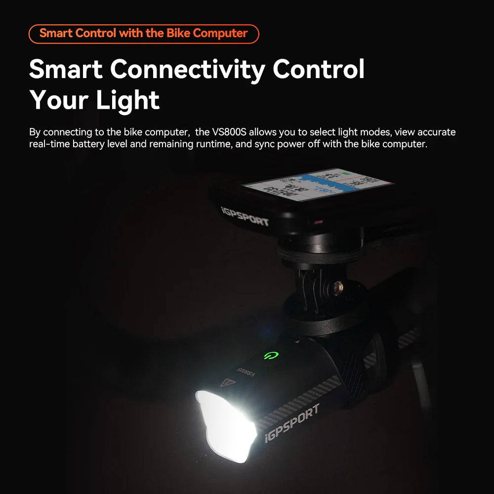 The iGPSPORT VS800S is the perfect front light for urban, road, or trail cyclists seeking safety, visibility, and smart technology in a compact and durable design. With 800 lumens of power and automated functions, this light not only illuminates your path but also adapts to your riding conditions to provide a safer and more efficient experience on every ride.