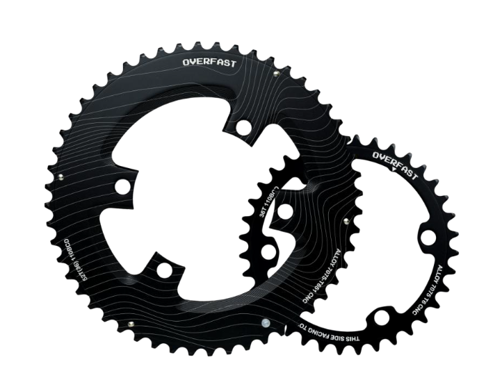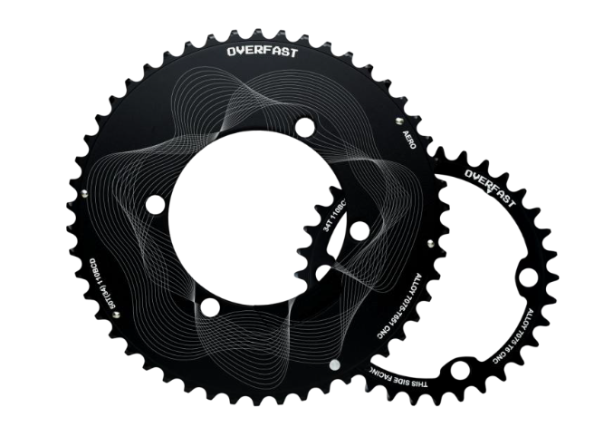 Los Overfast Chainrings están construidos con aleaciones ligeras de alta resistencia o fibra de carbono reforzada según la versión, lo que proporciona: